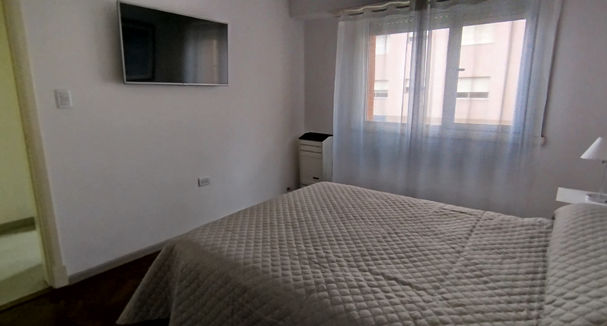 El departamento cuenta con 1 dormitorio con cama de 2 plazas con vista a la peatonal 83, cuenta con placard, caja de seguridad y TV de pantalla plana con DirecTV.